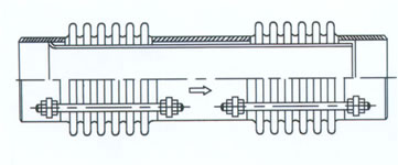 由一中部管段连接的两个波纹管和与中间段刚性连接的底座及两端管组成的挠性部件。每个波纹管作为单式普通型膨胀节补偿各自管段向位移。底座与中间管段的刚性连接能承受与应用场合相关的所有力和力矩的作用